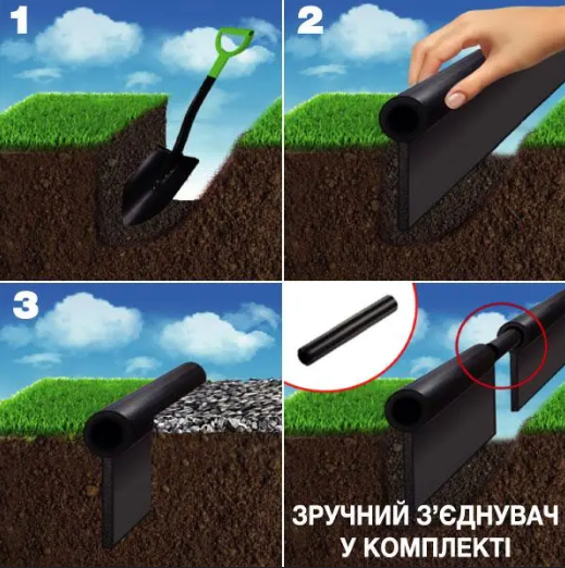 Наш бордюр легко поставити – просто закопайте його в землю. Не потрібно ніякого цементу, як зі звичайним бордюром.